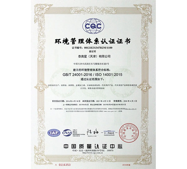ISO14001是環(huán)境管理體系認(rèn)證的代號(hào)。ISO14001系列標(biāo)準(zhǔn)是由國(guó)際標(biāo)準(zhǔn)化組織制訂的環(huán)境管理體系標(biāo)準(zhǔn)。是順應(yīng)國(guó)際環(huán)境保護(hù)的發(fā)展趨勢(shì),依據(jù)國(guó)際經(jīng)濟(jì)貿(mào)易發(fā)展的需要而制定的。ISO14001:2015環(huán)境管理體系的順利通過,進(jìn)一步證明了公司作為石化企業(yè)的運(yùn)轉(zhuǎn)環(huán)保合規(guī)性及各個(gè)產(chǎn)品的節(jié)能降耗性,為后續(xù)市場(chǎng)推廣,提供了更有力保障。