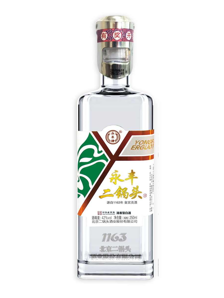 北京二鍋頭公司秉承傳統(tǒng)釀造技藝,選用優(yōu)質高粱為原料,以清香大曲為糖化發(fā)酵劑,采用老五甑工藝,清蒸清燒,掐頭去尾取中段,經長期儲存勾調而成。42度永豐二鍋頭2010年上市,其酒液清澈透明,綿甜醇厚,諸味諧調,尾凈悠長等特點,深受廣大消費者一致好評和青睞。46度、50度、56度永豐二鍋頭酒銷往全國各地,2021年全年銷售收入8.6億元,2022全年銷售收入突破10億元大關,真正實現(xiàn)了“釀成春夏秋冬酒,博得天涯海角名”,幾代人為之奮斗的夙愿。