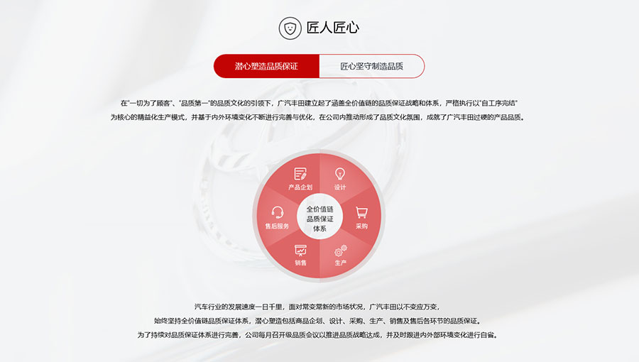 創(chuàng)新服務(wù),提供多元高價(jià)值:廣汽豐田致力成為顧客最喜愛(ài)的品牌,協(xié)同銷(xiāo)售渠道,為顧客提供高價(jià)值產(chǎn)品、高品質(zhì)服務(wù)、高品位體驗(yàn)。通過(guò)銷(xiāo)售店為顧客帶來(lái)全方位的出行服務(wù)以及豐富多彩的社區(qū)服務(wù)。同時(shí),積極探索共享、移動(dòng)出行領(lǐng)域,加速布局未來(lái)戰(zhàn)略新興業(yè)務(wù)。