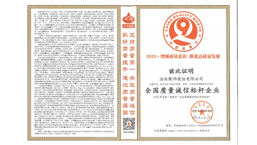 誠(chéng)信經(jīng)營(yíng)是企業(yè)的道德底線(xiàn),保證質(zhì)量安全是企業(yè)的責(zé)任。法派決心落實(shí)質(zhì)量誠(chéng)信的各項(xiàng)承諾,牢固樹(shù)立“誠(chéng)信至上、以質(zhì)取勝”的經(jīng)營(yíng)理念,以誠(chéng)信鑄品牌,以質(zhì)量求發(fā)展。