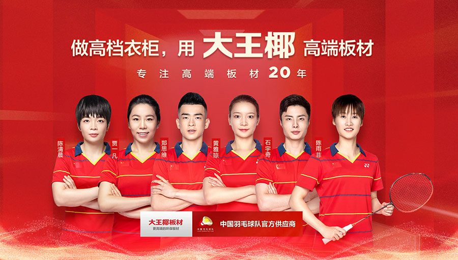 大王椰掌握5項(xiàng)關(guān)鍵除醛技術(shù),100余項(xiàng)國家技術(shù)專利,始終保持技術(shù)引領(lǐng)。大王椰不斷創(chuàng)新產(chǎn)品,陸續(xù)發(fā)布楠香木生態(tài)板、A7家具板、植萃除醛板、抗菌除醛板、A8高定板、1號(hào)原木板、雙效抗菌板、ENF級(jí)生態(tài)板、實(shí)木TT門板、PET柜門板等高端產(chǎn)品。2021年7月,大王椰正式簽約中國羽毛球隊(duì),致力于打造冠軍品質(zhì),大王椰讓更多健康產(chǎn)品走進(jìn)更多家庭。2024年4月,大王椰正式成為航天CNSPACE官方合作品牌,以航天精神為榜樣,不斷提升家居健康品質(zhì)。