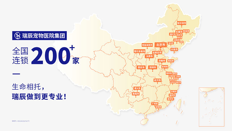 瑞辰寵物醫(yī)院集團由晨壹基金、KKR集團、愛爾眼科及少量國有資本等投資機構共同投資。集團現(xiàn)已完成B輪融資,在全國超50個大中城市擁有200+家優(yōu)秀寵物醫(yī)院。截至2024年6月,集團旗下醫(yī)院覆蓋區(qū)域包括北京、河北、山西、內(nèi)蒙古、遼寧、吉林、黑龍江、上海、江蘇、浙江、福建、山東、河南、湖北、廣東、貴州與陜西等地。以良好發(fā)展態(tài)勢為依托,聚焦行業(yè)市場,集團合理規(guī)劃在全國重點區(qū)域優(yōu)先集中建設寵物轉診中心醫(yī)院和國際化寵物醫(yī)院的戰(zhàn)略布局,致力于保障中國萬千家庭的寵物健康。