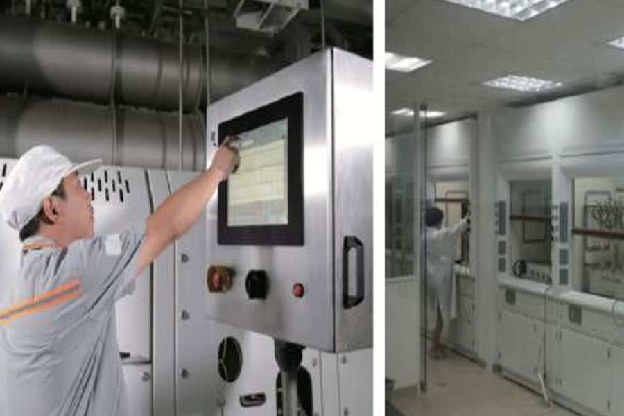 固態(tài)寵物配合飼料生產(chǎn)線由自動配料系統(tǒng)、混合機、粉碎機、混合機、膨化機、噴涂機、振動篩等組成;自動配料系統(tǒng)由20個料倉組成計量秤等設(shè)備,相比人工計量而言,大大提高了配料的精度和配料的準(zhǔn)確性;2臺不銹鋼的混合機保證了混合的均勻性和耐腐蝕性;雙螺桿的膨化機實現(xiàn)全自動液晶屏操作,可存儲生產(chǎn)產(chǎn)品的設(shè)備參數(shù)功能,再生產(chǎn)可直接調(diào)出后用于生產(chǎn),保證了產(chǎn)品的穩(wěn)定,全自動中央控制保證產(chǎn)品品質(zhì)穩(wěn)定的同時也大大減少了操作工人的工作強度,2條固態(tài)寵物配合飼料生產(chǎn)線產(chǎn)能均達5噸/小時。