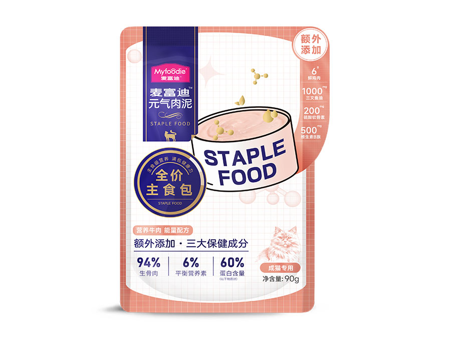 得益于多年服務(wù)國(guó)際客戶所積累的產(chǎn)品研發(fā)優(yōu)勢(shì)、生產(chǎn)工藝優(yōu)勢(shì)、質(zhì)量管控優(yōu)勢(shì),2013年公司創(chuàng)建自有品牌“麥富迪Myfoodie”,主打“國(guó)際化、天然、專業(yè)、時(shí)尚、創(chuàng)新”的品牌形象,根據(jù)用戶需求的變化升級(jí),相繼開發(fā)出弗列加特高肉貓糧系列、弗列加特全價(jià)凍干貓糧系列、雙拼糧系列、益生軍團(tuán)系列等多個(gè)產(chǎn)品系列,致力于成為國(guó)內(nèi)寵物食品行業(yè)標(biāo)桿。