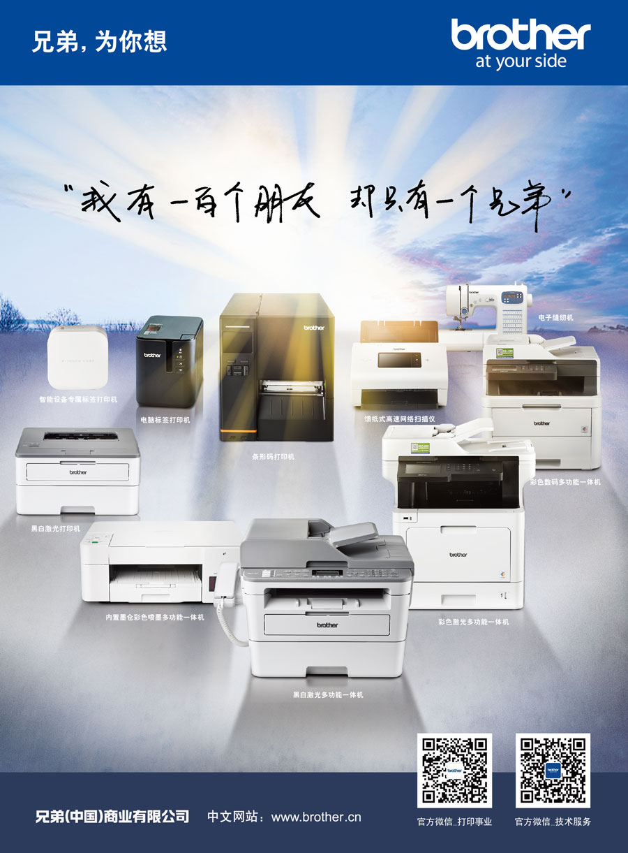 Brother作為擁有110多年歷史的國際化品牌,目前已在全球40個(gè)以上的國家和地區(qū)擁有研究開發(fā)基地、生產(chǎn)基地以及銷售公司。作為Brother集團(tuán)在中國的產(chǎn)品銷售與服務(wù)的外商獨(dú)資企業(yè),兄弟(中國)充分利用集團(tuán)的資源優(yōu)勢(shì),秉承“At your side.”的企業(yè)文化理念,遵循顧客第一的宗旨,傾聽顧客的呼聲,為中國消費(fèi)者提供更多具有高附加值的產(chǎn)品和服務(wù)。兄弟(中國)的事業(yè)領(lǐng)域包括以打印機(jī)、多功能一體機(jī)、傳真機(jī)、標(biāo)簽打印機(jī)、掃描儀等產(chǎn)品為代表的打印及解決方案事業(yè);以家用縫紉機(jī)、商用繡花機(jī)、電腦花樣裁切機(jī)為中心的家用機(jī)器事業(yè)。
