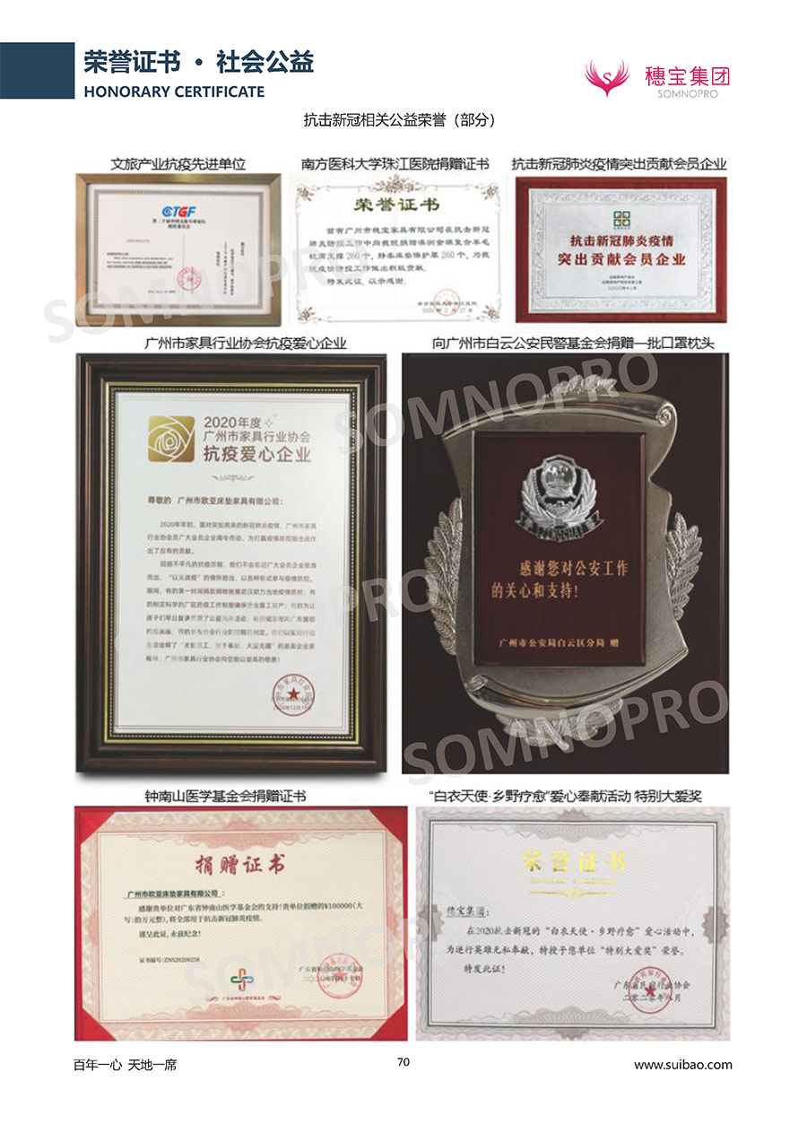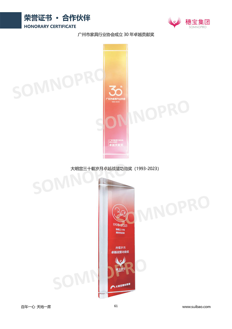 自1971年獨立研發(fā)生產(chǎn)出專屬國人的彈簧床墊,穗寶關(guān)于優(yōu)質(zhì)深度睡眠的研究已有半個世紀的歷史。穗寶一直專注床墊,專注中國消費者的睡眠研究,針對中國人特點進行優(yōu)化創(chuàng)新,不斷提升國人的睡眠體驗,只為成就每個晚上8小時的優(yōu)質(zhì)深度睡眠。憑借不斷革新的研發(fā)科技和深受消費者信賴的產(chǎn)品品質(zhì),穗寶集團旗下品牌和產(chǎn)品屢獲國內(nèi)外大獎,連續(xù)20年榮膺中國500最具價值品牌,品牌價值高達302.89億元。