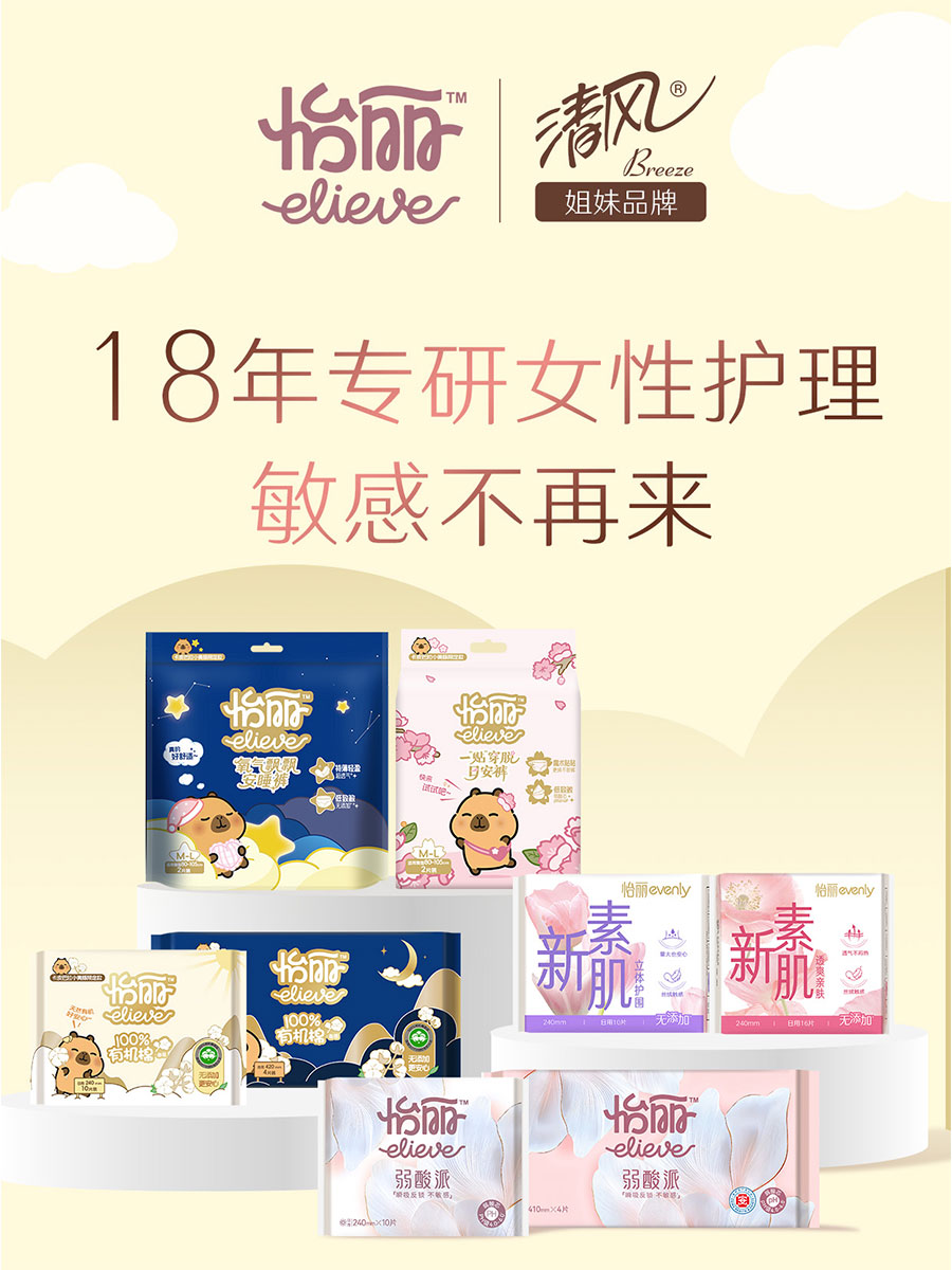 “鉑麗雅”品牌“借助自然的力量”為女性帶來美好的個(gè)人美妝護(hù)理體驗(yàn)。“真真”專業(yè)舒適型成人護(hù)理品牌,主打?qū)I(yè)、舒適、極致性價(jià)比。“怡麗”以膚感定義舒適,專注衛(wèi)生巾膚感科技,探索無感舒適體驗(yàn)。