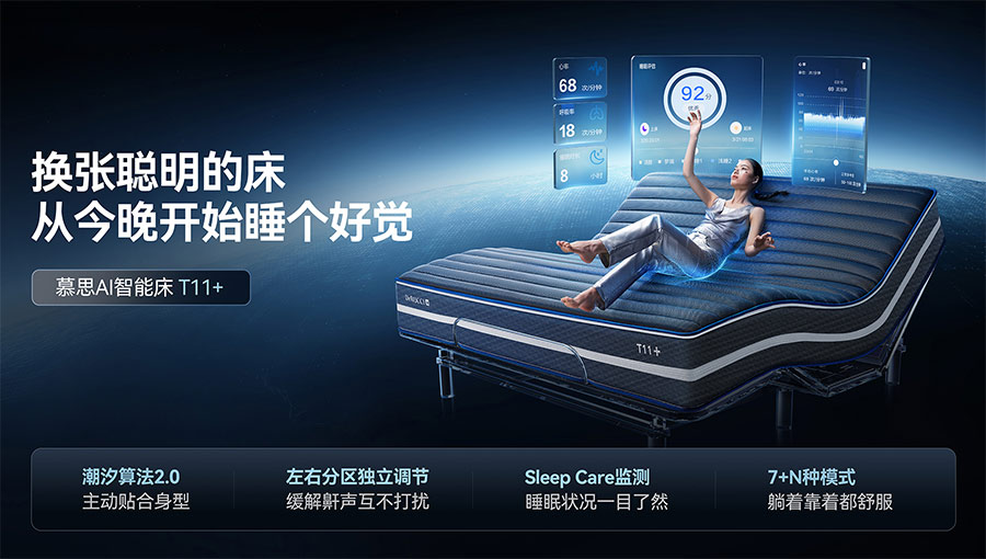 創(chuàng)立之初,慕思就創(chuàng)新性地提出了“量身定制健康睡眠系統(tǒng)”的商業(yè)模式,憑借“量身定制個(gè)人專屬的健康睡眠系統(tǒng)”推動(dòng)傳統(tǒng)寢具行業(yè)的發(fā)展。慕思健康睡眠系統(tǒng)現(xiàn)已更新至第八代T11智能睡眠系統(tǒng),在睡眠垂直領(lǐng)域積累超過(guò)百萬(wàn)數(shù)據(jù),形成一套“潮汐算法”,提供個(gè)性化的睡眠建議和改善方案,幫助用戶改善睡眠質(zhì)量。