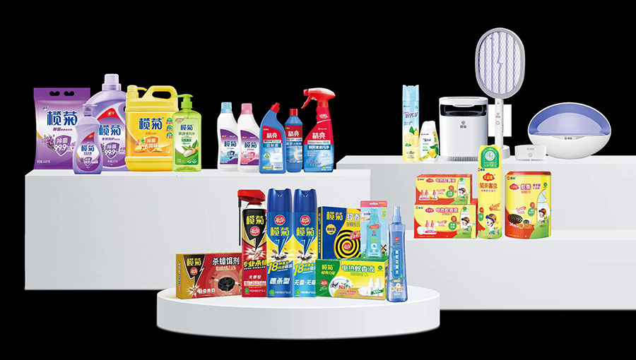 主要產(chǎn)品:欖菊盤(pán)式蚊香、電熱蚊香液、驅(qū)蚊液、電熱蚊香片、電蚊香加熱器、殺蟲(chóng)氣霧劑、殺蟑餌劑、滅蚊燈、電蚊拍、洗衣液、洗潔精、洗衣粉、洗衣皂、洗手液、84消毒液、潔廁精(液)、花露水、空氣清新劑等