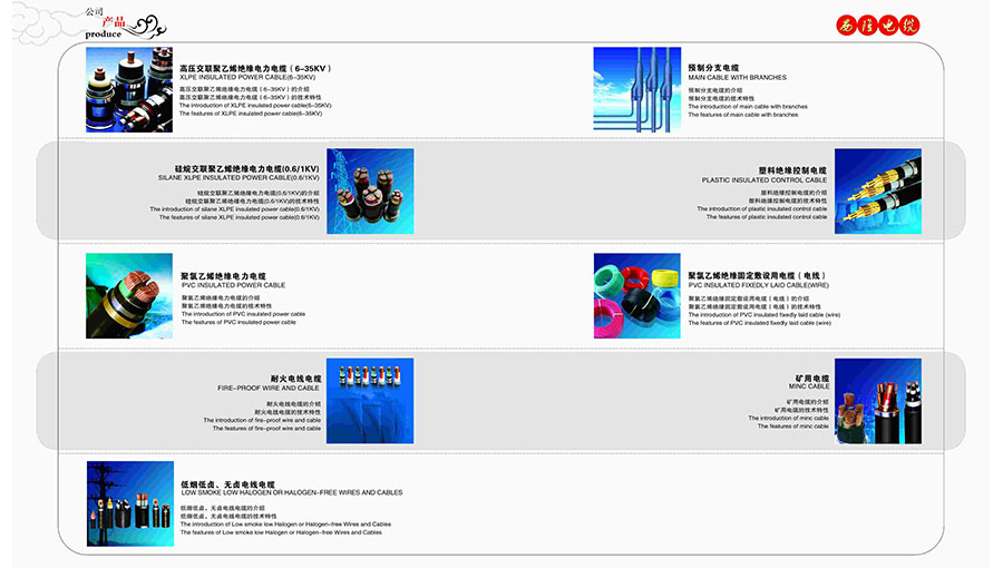 主要產(chǎn)品:“西隆線纜”品牌高低壓電力電纜、架空絕緣導(dǎo)線、架空裸導(dǎo)線、民用電線、戶外耐候線、控制電纜、橡套電纜、礦用阻燃電纜、硅橡膠電纜、計(jì)算機(jī)電纜、光伏專用電纜、鋁合金電力電纜、氟塑料電纜等產(chǎn)品