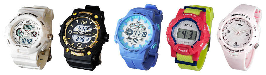 主要產(chǎn)品:“信佳”牌冷光防水運(yùn)動(dòng)表、行針數(shù)顯二合一手表、計(jì)算器表、語音報(bào)時(shí)表、電子表、電子鐘