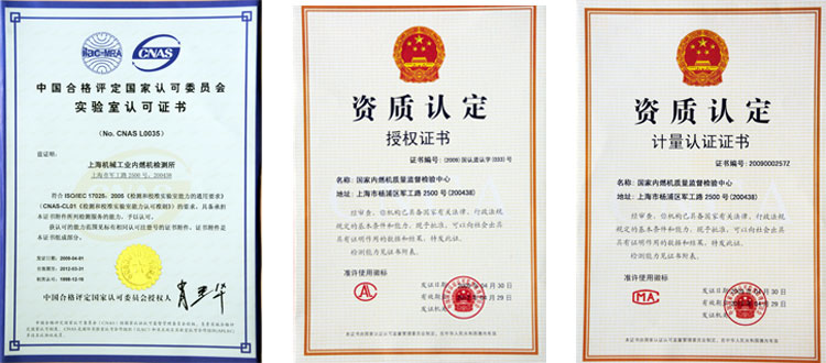 國(guó)家內(nèi)燃機(jī)質(zhì)量監(jiān)督檢驗(yàn)中心是中國(guó)合格評(píng)定國(guó)家認(rèn)可委員會(huì)認(rèn)可的檢測(cè)實(shí)驗(yàn)室,認(rèn)可名稱(chēng)為上海機(jī)械工業(yè)內(nèi)燃機(jī)檢測(cè)所。