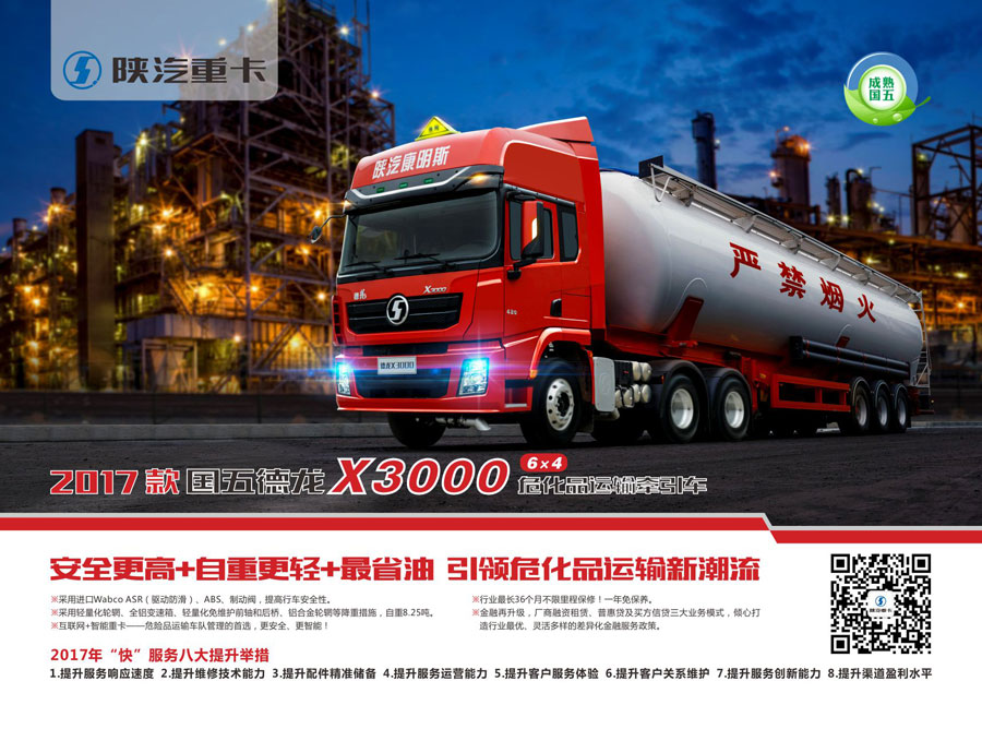 作為節(jié)能與新能源汽車產(chǎn)業(yè)的倡導(dǎo)者和推動(dòng)者,陜汽在節(jié)能與新能源商用車領(lǐng)域具有一流的技術(shù)及產(chǎn)品研發(fā)優(yōu)勢(shì),擁有38項(xiàng)LNG重卡專利技術(shù),承擔(dān)了國(guó)家863新能源商用車開發(fā)項(xiàng)目,具備了新能源商用車系統(tǒng)集成及核心零部件開發(fā)能力。在LNG、甲醇、二甲醚等節(jié)能重卡領(lǐng)域市場(chǎng)占有率超過45%;純電動(dòng)碼頭牽引車成功進(jìn)入美國(guó)市場(chǎng),實(shí)現(xiàn)了中國(guó)重卡產(chǎn)品在歐美發(fā)達(dá)國(guó)家市場(chǎng)的突破。