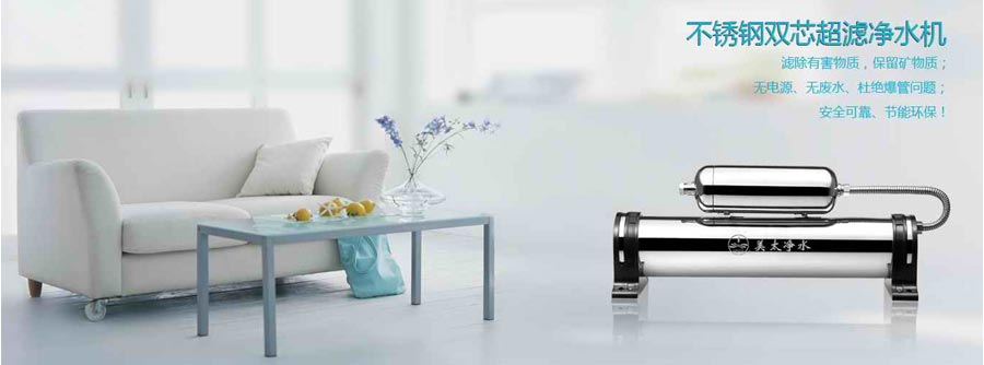 主要產品:美太牌不銹鋼超濾機、別墅中央凈水器、不銹鋼商務飲水臺
