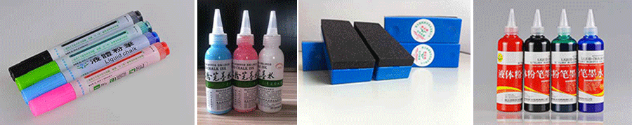 煜輝主要產(chǎn)品——液體粉筆及環(huán)保可擦墨水。煜輝公司為中國3000萬教師和4億學生健康著想,立志于解決傳統(tǒng)粉筆粉塵污染問題,決定開發(fā)液體粉筆,還給廣大師生一個健康潔凈的學習環(huán)境。2003年—2008年,經(jīng)過努力,彩色液體粉筆終于成功問世。該產(chǎn)品共有黑色、紅色、藍色、綠色四種顏色。液體粉筆墨水灌裝在筆內(nèi),在米黃色教學板上書寫,字跡清晰,顏色多樣化能滿足教學質(zhì)量;書寫流暢,摩擦力小,減少教師板書疲勞;擦拭無塵,能讓教師輕松愉快地講解,提高教學質(zhì)量。煜輝公司生產(chǎn)的彩色液體粉筆,使用前學校只需投入很少的資金,在不改變原有教學板性質(zhì)的情況下簡單改造黑板,就可以正常使用該產(chǎn)品。這樣就降低學校的使用成本,為煜輝產(chǎn)品迅速進入市場創(chuàng)造了有利條件。