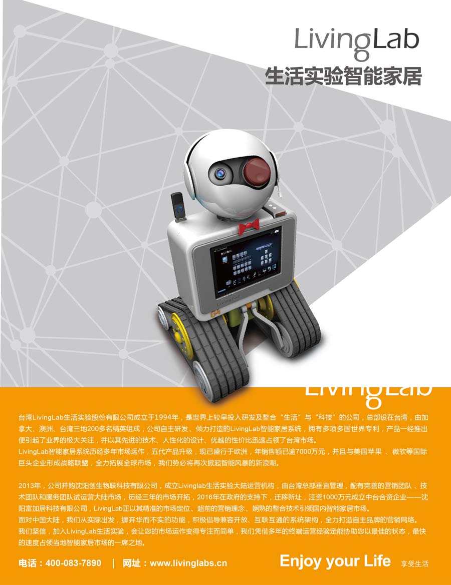 臺灣LivingLab生活實驗股份有限公司成立于1994年,是世界上較早投入研發(fā)及整合“生活”與“科技”的公司,總部設(shè)在臺灣,由加拿大、澳洲、臺灣三地200多名精英組成。公司自主研發(fā)、傾力打造的LivingLab智能家居系統(tǒng),擁有多項多國世界專利,產(chǎn)品一經(jīng)推出便引起了業(yè)界的極大關(guān)注,并以其先進(jìn)的技術(shù)、人性化的設(shè)計、優(yōu)越的性價比迅速占領(lǐng)了臺灣市場。