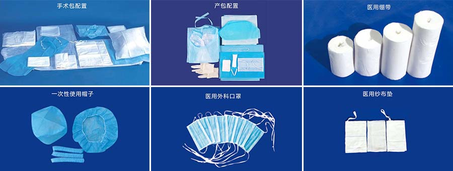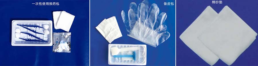 主要產品:金環(huán)騰月無菌產包、手術包、導尿包、換藥包、紗布塊、無菌醫(yī)用墊等