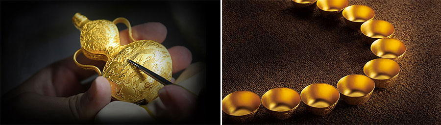 國金黃金自涉足藝術(shù)黃金領(lǐng)域之初就努力踐行“非凡技藝、完美品質(zhì)”的產(chǎn)品理念,以客戶體驗為中心圍繞傳承和使用理念設(shè)計和策劃產(chǎn)品。逐步建成了以傳家系列、平安系列、婚慶系列、生肖系列及國金定制五大系列組成的產(chǎn)品細(xì)分體系。其中,從文化層面包含了酒文化、茶文化、福文化、佛文化、喜文化、生肖文化、節(jié)慶文化、紀(jì)念文化等題材;從功能上又包含了食器、酒器、茶器、福器、玩器、合器等實用器型,能滿足各類客戶的多元化需求。此外,擁有眾多專業(yè)設(shè)計人才的國金定制顧問團(tuán)隊,又能為個人客戶和企業(yè)客戶提供一對一的專業(yè)定制服務(wù),幫助每一位客戶實現(xiàn)黃金夢想,造就品質(zhì)生活。