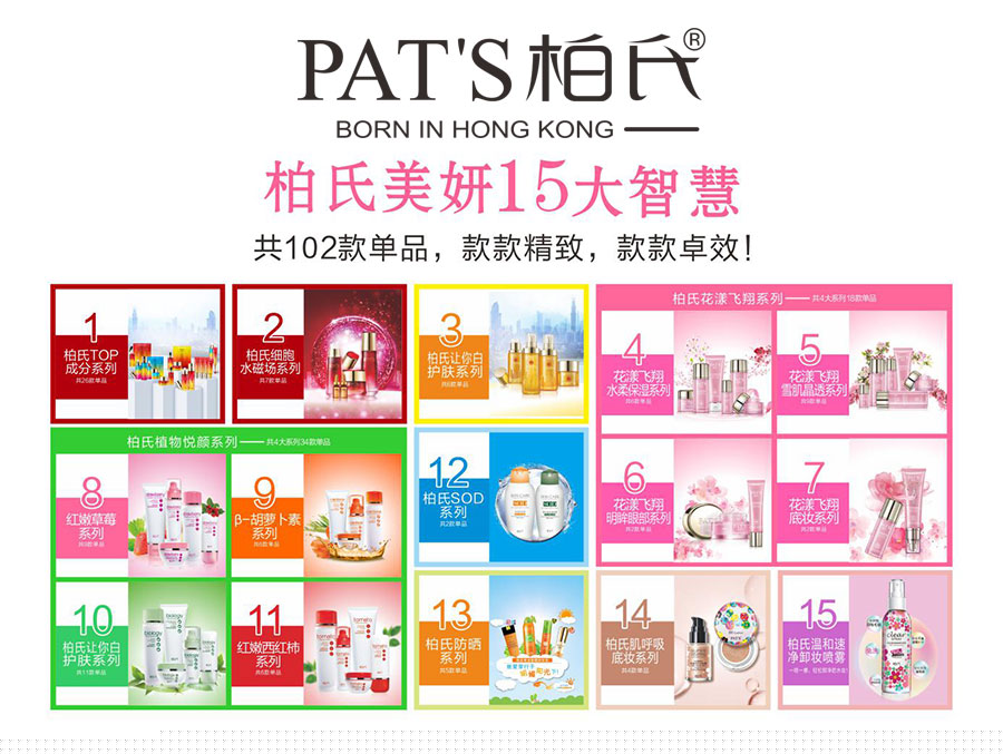 柏氏1983年誕生于東方時(shí)尚之都——香港,1991年,柏氏正式進(jìn)駐中國內(nèi)陸發(fā)展。發(fā)展至今,柏氏已擁有水磁場、砰砰、讓你白、煥顏、花漾飛翔、植物悅顏、雪妃、水庫、雪晶靈、男士、底妝、防曬等系列。柏氏致力于美容事業(yè)已30多年,基于對(duì)東方女性皮膚的深刻了解,以“為東方女性創(chuàng)造個(gè)性之美,生命之美”為己任,憑著不懈的努力和誠意的溝通,柏氏一直致力于滿足廣大女性的肌膚護(hù)理需求。專為亞洲肌膚研制真正適合亞洲膚質(zhì)的護(hù)膚品。30多年來,柏氏致力于亞洲肌膚的研究,完美破譯亞洲肌膚護(hù)理密碼,旨在提供真正適合亞洲膚質(zhì)的護(hù)膚品。