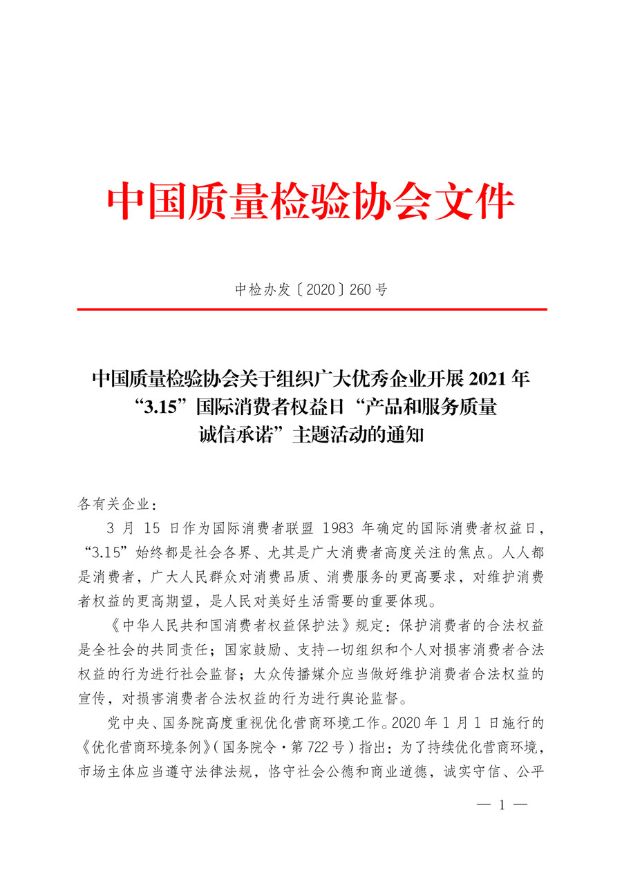 中國質量檢驗協(xié)會關于組織廣大優(yōu)秀企業(yè)開展2021年