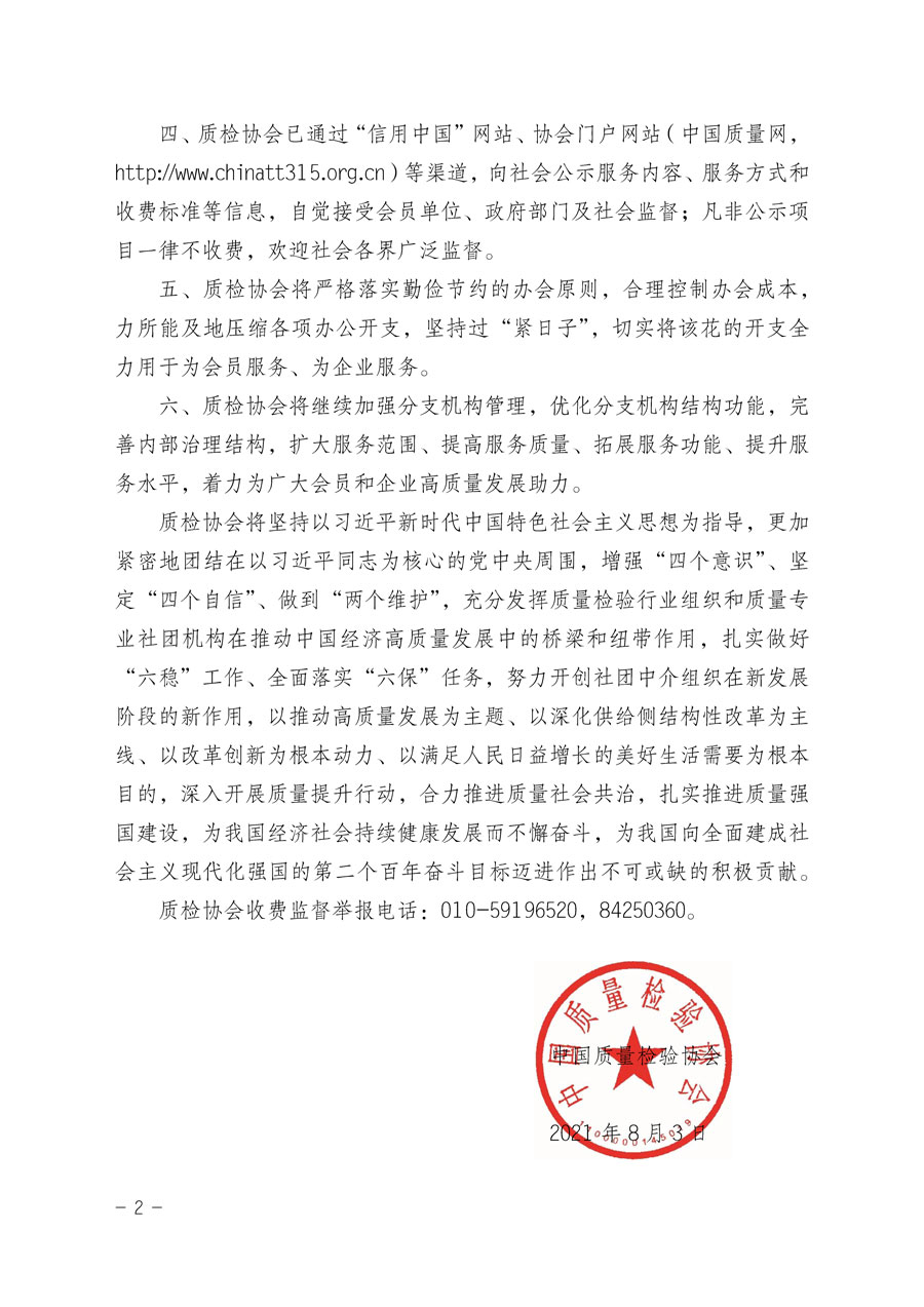 中國質(zhì)量檢驗協(xié)會收費自律承諾書