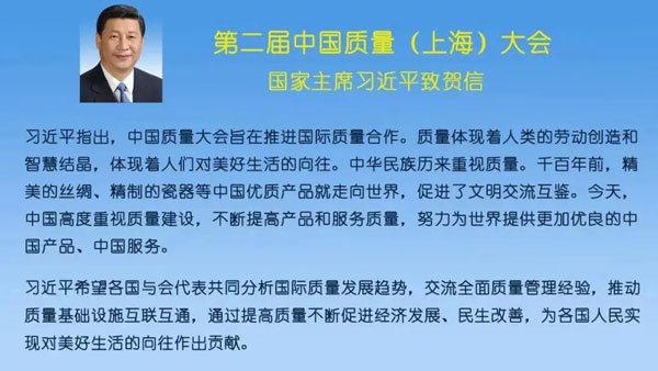 金秋時(shí)節(jié)的黃浦江邊,中國質(zhì)量(上海)大會如約而至。國家主席習(xí)近平給大會發(fā)來賀信,對大會的召開表示熱烈的祝賀。