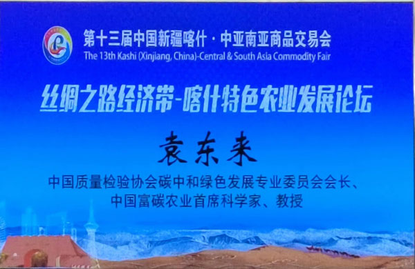 2023年6月22日,第十三屆中國新疆喀什中亞南亞商品交易會主題活動“絲綢之路經(jīng)濟帶——喀什特色農(nóng)業(yè)發(fā)展論壇”在喀什市喀什賓館召開。中國質(zhì)量檢驗協(xié)會碳中和綠色發(fā)展專業(yè)委員會會長、中國富碳農(nóng)業(yè)首席科學(xué)家袁東來教授應(yīng)邀在論壇上發(fā)表了以《美麗喀什 “碳”索未來》為主題的演講。