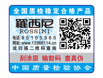 【“全國質(zhì)檢穩(wěn)定合格產(chǎn)品”專用標(biāo)識】具有專屬的知識產(chǎn)權(quán)(經(jīng)中國版權(quán)保護中心審核,國家版權(quán)局對“全國質(zhì)檢穩(wěn)定合格產(chǎn)品”專用標(biāo)識頒發(fā)了《作品登記證書》,登記號:國作登字-2015-L-00188456),基本規(guī)格為5cm2,集電話電碼防偽查詢、二維碼在線掃描、微信驗證等多種功能于一體,綜合運用了紐索幣紋、微縮文字、熒光激發(fā)油墨等多種防偽技術(shù);專用標(biāo)識加貼在產(chǎn)品或包裝上,消費者只需要用座機(手機)電話撥打全國范圍內(nèi)都不需要加區(qū)號的特服號碼95105365或使用手機掃描二維碼或登陸網(wǎng)站(http://www.12365114.cn)就可直接查詢驗證加貼專用標(biāo)識的產(chǎn)品為第三方國家質(zhì)量專業(yè)機構(gòu)客觀、公正證明的全國質(zhì)量檢驗穩(wěn)定合格產(chǎn)品,形成企業(yè)自己獨有的比較優(yōu)勢,助力企業(yè)通過“質(zhì)量檢驗”的比較優(yōu)勢去贏得消費者更多的信任。