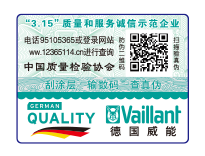 【防偽合格證 • 售后服務(wù)卡一體化標(biāo)識】采用專用紙型制作,將防偽可變信息與產(chǎn)品售后服務(wù)信息統(tǒng)一制作在售后服務(wù)卡上,既省去了貼標(biāo)的工序環(huán)節(jié),又切實提高了生產(chǎn)效率,在有效解決企業(yè)防偽應(yīng)用的基礎(chǔ)上,大大節(jié)省企業(yè)的生產(chǎn)成本,同時,以第三方質(zhì)量專業(yè)機構(gòu)和質(zhì)量檢驗行業(yè)組織的名義向消費者傳遞對企業(yè)產(chǎn)品的信任,加大消費者對企業(yè)品牌的消費信任度。