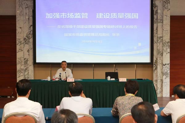 在我國(guó)第40個(gè)全國(guó)“質(zhì)量月”到來(lái)之際,9月1日,由中共中央組織部、中國(guó)浦東干部學(xué)院和國(guó)家市場(chǎng)監(jiān)督管理總局共同舉辦的“省部級(jí)干部建設(shè)質(zhì)量強(qiáng)國(guó)專題研討班”在滬開(kāi)班,這也是繼兩年前在京舉辦首個(gè)省部級(jí)干部“全面實(shí)施質(zhì)量強(qiáng)國(guó)戰(zhàn)略專題研討班”之后的第二個(gè)省部級(jí)質(zhì)量強(qiáng)國(guó)戰(zhàn)略專題研討班。市場(chǎng)監(jiān)管總局局長(zhǎng)、黨組副書記張茅作為首位授課人,在專題研討班上以“加強(qiáng)市場(chǎng)監(jiān)管 建設(shè)質(zhì)量強(qiáng)國(guó)”為題做了專題講座。