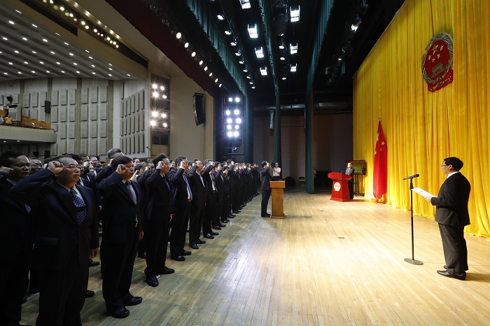 會(huì)議舉行了憲法宣誓儀式。下午3時(shí)30分,在張茅的監(jiān)誓下,馬正其宣布宣誓儀式開(kāi)始。總局機(jī)關(guān)138名新任司局級(jí)干部集體列隊(duì),面向國(guó)徽、國(guó)旗,同唱中華人民共和國(guó)國(guó)歌。領(lǐng)誓人撫按憲法,宣讀誓言,其他宣誓人列隊(duì)站立,跟誦誓詞。