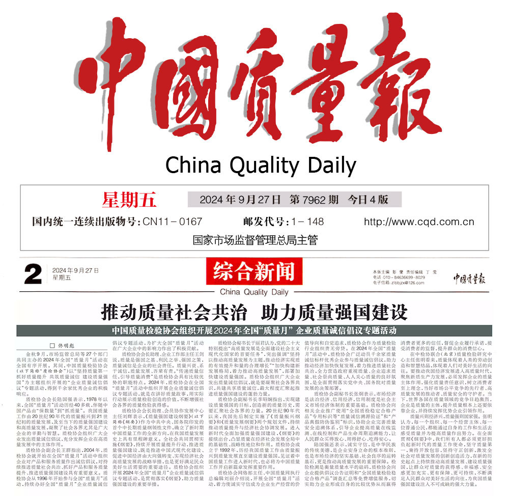 - 中國質(zhì)量報—堅持質(zhì)量第一推動質(zhì)量社會共治 助力質(zhì)量強國建設(shè)——中國質(zhì)量檢驗協(xié)會組織開展2024年全國“質(zhì)量月” 企業(yè)質(zhì)量誠信倡議專題活動