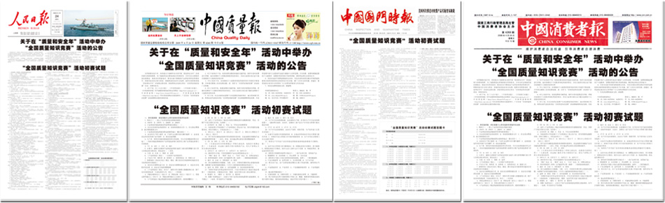 四川新聞網(wǎng)專題轉(zhuǎn)發(fā)《關于在“質(zhì)量和安全年”活動中舉辦“全國質(zhì)量知識競賽”活動公告及初賽試題》